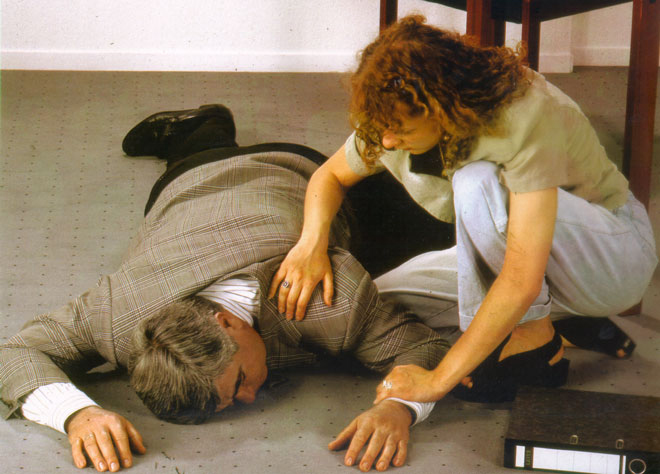 • Bei Bewusstlosigkeit und vorhandener Atmung laut "Hilfe" rufen, um Umstehende auf die Notfallsituation aufmerksam zu machen